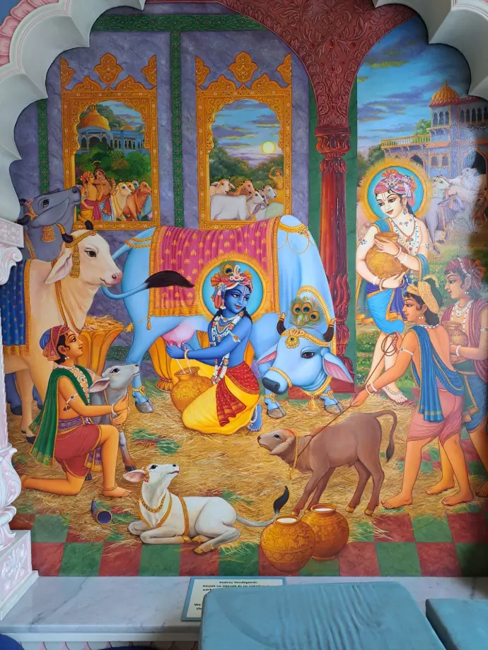 In this article Deborah de Koning investigates how the materialization of religion in the landscape and the self-sustainable and selfsufficient practices of the ISKCON members shape the ecological imagination in Krishna Valley. She explains how service to the cows (go-seva) not only contributes to the community's self-sufficient way of life, but also to a landscape that pleases Krishna and creates a abode on earth where he wants to live. She also illustrates how water management in Krishna Valley is imbued with religious meaning by the story of Krishna defeating de demon-serpent Kaliya.